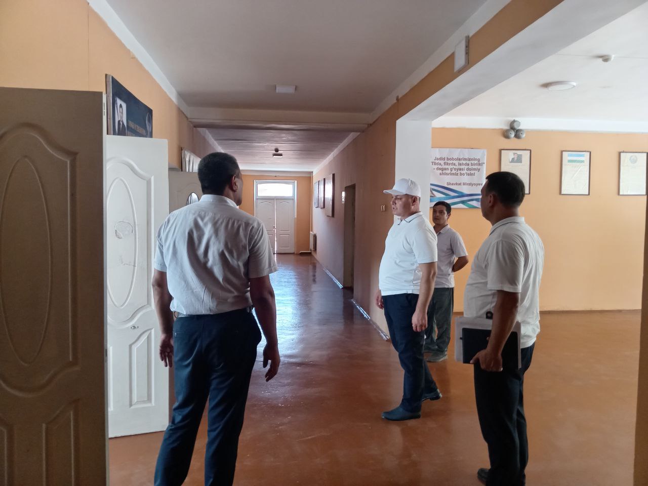 Бошланиши кутилаётган янги ўқув йилига тайёргарлик жараёни ҳамда таълим муассасаларининг куз-қиш мавсумига тайёргарлик ҳолатини ўрганиш мақсадида туман ҳокими Жўрабек Нуматов ҳамда тегишли соҳа раҳбарлари иштирокидаги ишчи гуруҳ томонидан тумандаги умумтаълим мактаби фаолиятлари ўрганилди.