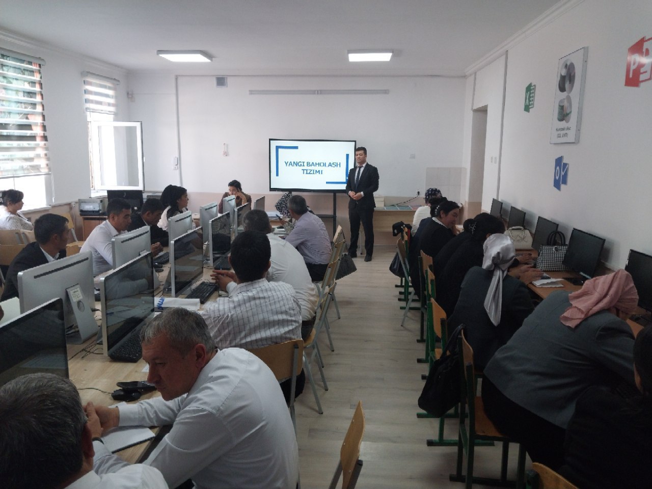 Ушбу тренингда Норин туман ихтисослаштирилган мактаб ўқитувчиси Э. Қутбиддинов томонидан Янги бахолаш тизими қулайлик ва имкониятлари тўғрисида маълумот бериб ўтилди.