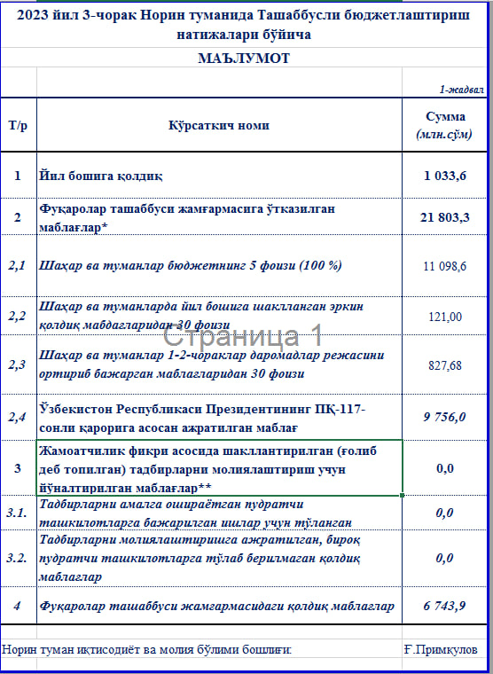 Ўзбекистон Республикаси Президентининг 2023 йил 10 апрелдаги ПҚ-118-сонли қарорига асосан, Норин туманида 136 та ижтимоий соҳа объектлари ДХШ асосида бошқарилиши ҳамда 68 тасини жорий йилда модернизация қилиниши белгиланган.